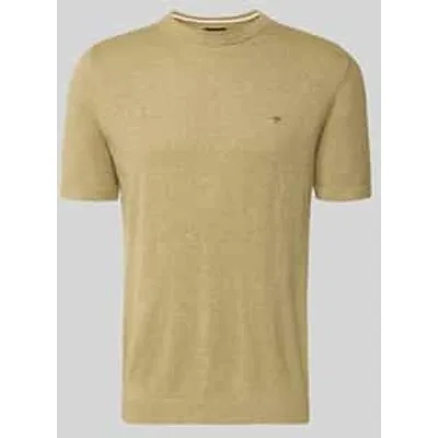 heren t-shirt van Fynch-Hatton;Katoenmix met linnenanteil;regular fit;tricotlook;gestikt logo;Elastische boorden;Ruglengte bij maat M: 70 cm