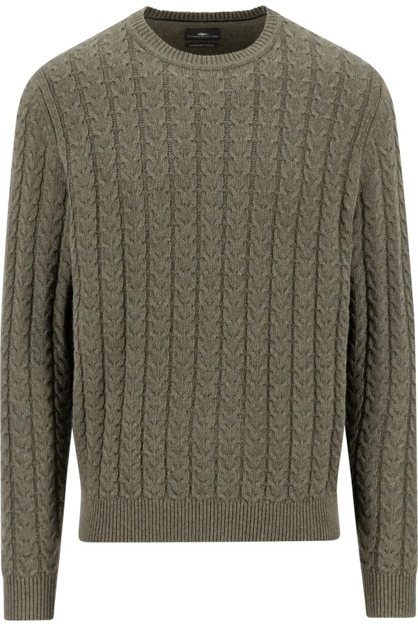 Fynch-Hatton Trui ronde halsDonker kaki, Cable knit Prijzen