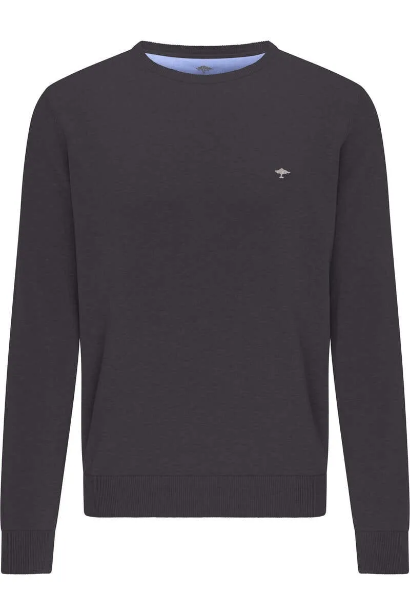 Fynch-Hatton Trui ronde halsdonkergrijs, Effen