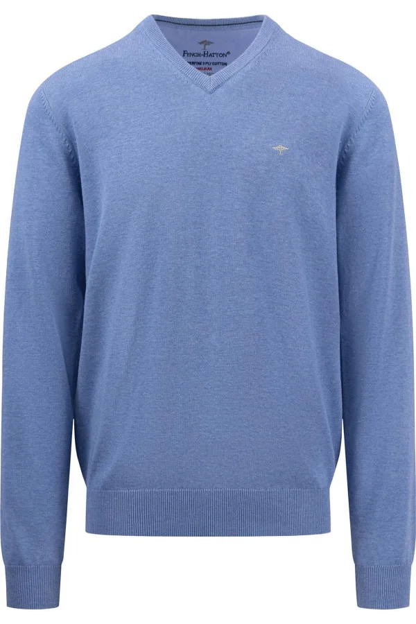 Fynch-Hatton Trui V-halsblauw, Effen