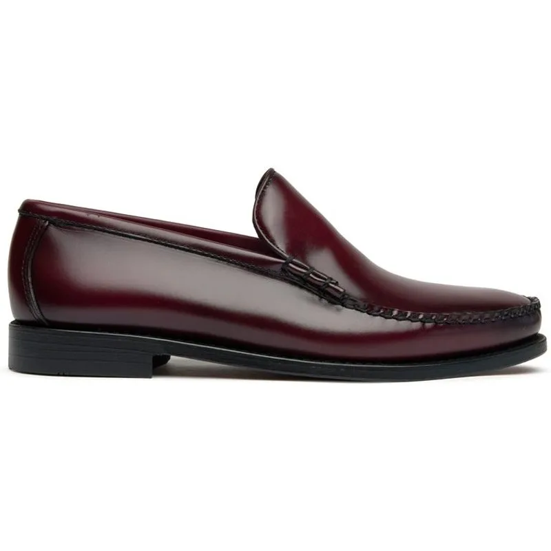 De G.H.Bass Cobra Venetian biedt tijdloze verfijning in rijk bordeauxleer dat met de hand tot in de perfectie is gepolijst. Deze klassieke loafer heeft de kenmerkende Venetiaanse silhouet met tonale stiksels en een leren gevoerd voetbed voor comfort de hele dag door. De gouden folie merkbedrukking op het voetbed voegt een subtiele luxe toe, terwijl het instapontwerp deze schoenen net zo praktisch als stijlvol maakt voor de moderne gentleman.