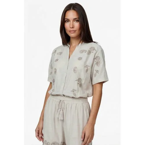 Breng subtiele kleur en patroon in je garderobe met deze zandkleurige paisley blouse voor dames van G-maxx. De Ottilia blouse heeft een rustige zandkleur als basis, gecombineerd met een verfijnde paisley print die direct voor een vrouwelijke uitstraling zorgt. De klassieke kraag en de knoopsluiting aan de voorkant geven een nette, verzorgde look, terwijl de korte, rechte mouwen het model luchtig maken voor warme dagen.Luchtige blouse met fijne details Gemaakt van 80% rayon en 10% linnen, aangevuld met een soepele vezel voor een zachte, gladde touch op de huid Korte, rechte mouwen die zorgen voor een comfortabele pasvorm rond de armen Klassieke kraag en volledige knoopsluiting voor een tijdloze, nette uitstraling Zandkleurige basis met paisley print, makkelijk te combineren met effen broeken en rokken Zonder borstzakken, waardoor het voorpand rustig en elegant oogt Geschikt voor het lente seizoen, licht en prettig om de hele dag te dragenMakkelijk te stylen in het dagelijks levenDe Ottilia blouse draag je eenvoudig in een jeans voor een casual dag, of in een nette pantalon voor werk of een etentje. Door de neutrale zandkleur past de blouse goed bij aardetinten, wit en donkerblauw.De stijl van G-maxxG-maxx richt zich op modieuze items met een vrouwelijke uitstraling en draagbaar comfort. De ontwerpen sluiten aan bij de laatste trends, maar blijven tegelijk geschikt voor alledaagse momenten. Zo vul je je kledingkast met stukken waar je vaak naar grijpt.Een sfeervolle blouse die je look in één keer compleet maakt.