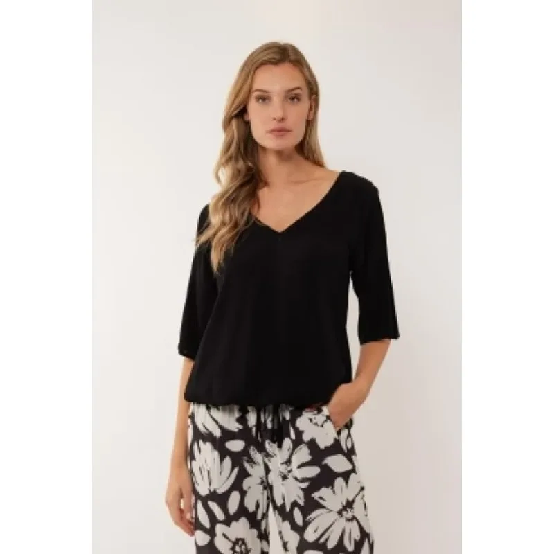 De Bo top heeft een losvallend model met een tunnelkoord aan de onderzijde om de top te laten bloezen. Ook is de top voorzien van halflange mouwen met een geplooide textuur.Extra details zijn: Half lange mouwen Vhals Tunnelkoord aan de onderzijde EffenMateriaal:60% Katoen 40% RayonWasvoorschrift:Machinewas max. Fijnwas 30 graden Celsius. Niet in droger