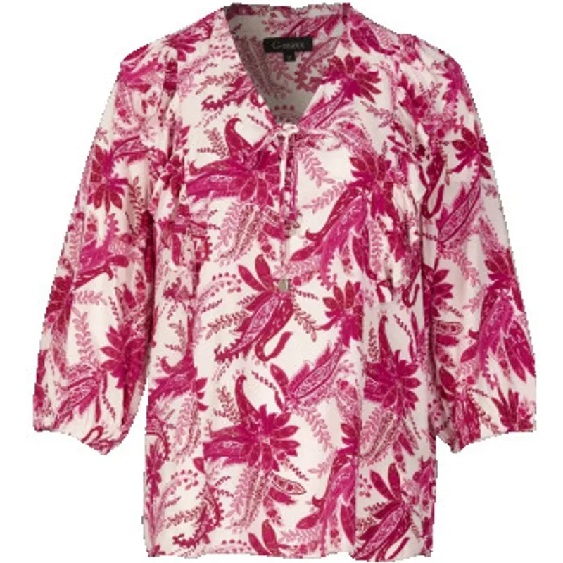 Geef je zomerse look een vrolijke pop of color met de Claudia top, voorzien van een elegante bloemendessin. De top heeft een losvallend model met halflange mouwen en een striksluiting in de halslijnExtra details zijn: Bloemendessin Losvallend model Halflange mouwen StriksluitingMateriaal:65% Viscose 35% PolyesterWasvoorschrift:Machinewas max. Fijnwas 30 graden Celsius. Niet in droger