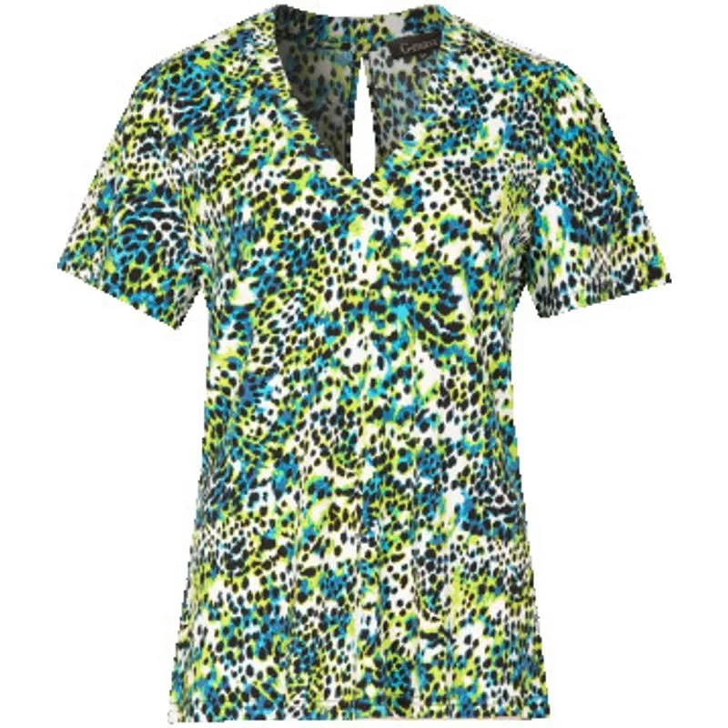 Betreed de zomerse dagen met een vleugje wilde elegantie en tijdloze stijl met de Dila top. De top heeft een comfortabel aansluitend model met korte mouwen en een elegante Vhals. Extra details Allover print Vhals Recht model Korte mouwen. Materiaal:93% Viscose 7% ElastaanWasvoorschrift:Machinewas max. Fijnwas 30 graden Celsius. Niet in droger