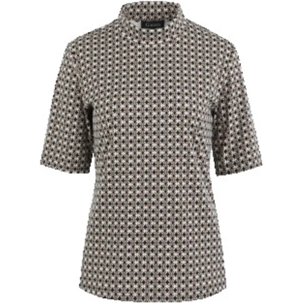De Eef top is gemaakt van travelstof en biedt daardoor een hoog draagcomfort. De top heeft een losvallend model met een opstaande kraag en is voorzien van een speelse, grafische print. Style deze top met de Bindi broek voor een complete set.Extra details zijn: Korte mouwen Colletje Yoga stof Allover printMateriaal:75% Polyamide, 25% ElastaneWasvoorschrift:Machinewas max. Fijnwas 30 graden Celsius. Niet in droger