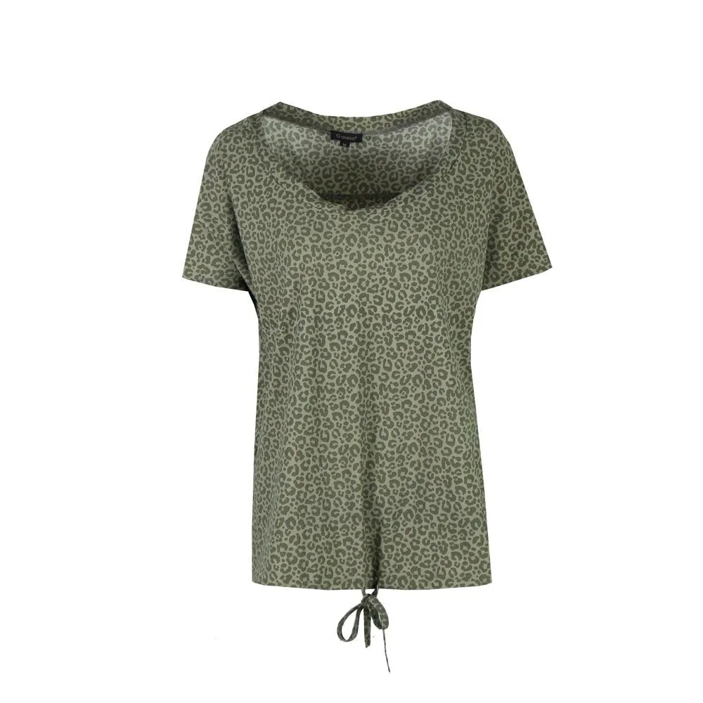 De Eline Top van G-maxx heeft korte mouwen en een ronde hals. De top is voorzien van een print en heeft een strikdetail aan de onderzijde. De travelstof zorgt voor een comfortabel gevoel en het printje maakt de look helemaal af.