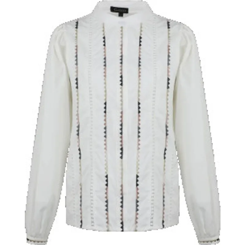 Deze elegante witte Elive blouse straalt verfijning uit met haar subtiele pofmouwen en sierlijke broderie. De luchtige stof en geraffineerde details maken dit een veelzijdig en stijlvol kledingstuk. Perfect voor zowel formele als casual gelegenheden.Extra details zijn: Pofmouwen Sierlijke broderie Opstaande kraag KnoopsluitingMateriaal:100% KatoenWasvoorschrift:Machinewas max. Fijnwas 30 graden Celsius. Niet in droger