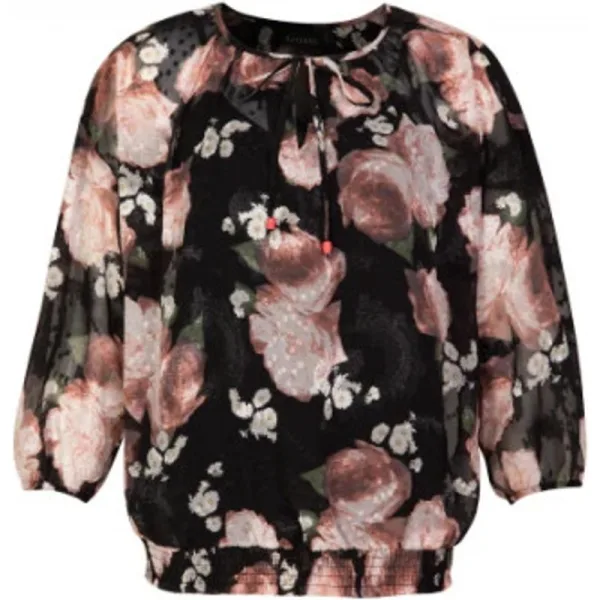 De Patyton top is voorzien van een rijke bloemenprint, wat de voorjaar naar je look haalt. De top heeft een losvallend model met halflange mouwen, een striksluiting in de hals en een elastieke band aan de onderkant om te top de bloezen.Extra details zijn: Allover print Losvallend model Striksluiting in de hals Elastieke band aan de onderkantMateriaal:100% PolyesterWasvoorschrift:Machinewas max. Fijnwas 30 graden Celsius. Niet in droger