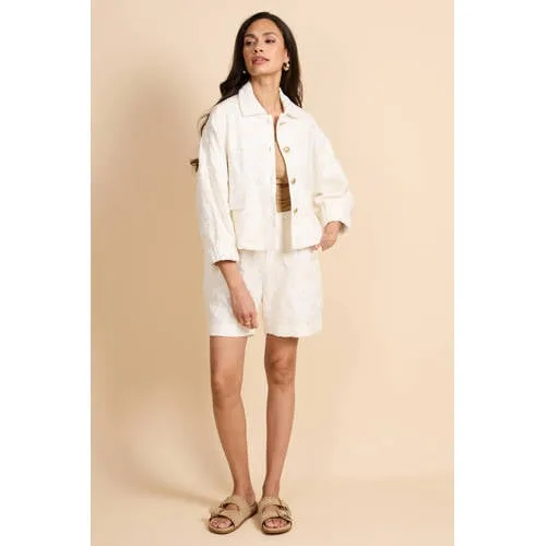 De G-maxx Esmarie bermuda shorts in wit is een frisse basis voor je garderobe. De korte broek heeft een straight pasvorm en een regular waist, waardoor de taille mooi aansluit zonder strak te zitten. De witte kleur geeft een rustige, verzorgde uitstraling en laat zich makkelijk combineren met tops en blouses in jouw kast. De soepele stof met rayon voelt zacht aan en beweegt prettig met je mee, ideaal voor lange dagen buiten of een ontspannen dag thuis.Verfijnde details voor elke dag Straight pasvorm met bermuda lengte voor een nette, maar toch casual look Regular waist met rits- en knoopsluiting voor een vertrouwd en stabiel gevoel in de taille Effen witte kleur die eenvoudig te combineren is met zowel basics als opvallende prints Praktische voorzakken voor kleine essentials als sleutels of een lippenbalsem Subtiele borduursels en glimmende accenten voor een vrouwelijke, verfijnde touch Zachte, soepelvallende stof met rayon, prettig om te dragen in het voorjaar en de zomerIdeaal voor lente looks en zomerse dagenDe Esmarie shorts passen goed bij een luchtige blouse, een T-shirt of een fijngebreide trui. Met sandalen creëer je een lichte lente outfit, met sneakers geef je de korte broek juist een sportieve draai. Dankzij de bermuda lengte voelt het comfortabel en aangekleed, ook tijdens actieve momenten met het gezin of een dagje stad.G-maxx: moderne stijl met aandacht voor detailG-maxx ontwerpt modieuze dameskleding met een vrouwelijke uitstraling en doordachte details. De collecties zijn geïnspireerd op de laatste trends, maar blijven tegelijk draagbaar voor elke dag. Met G-maxx kies je voor kleding die je gemakkelijk combineert en waarin je je vanzelfverzekerd voelt, of je nu naar je werk gaat of een vrije dag hebt.Een veelzijdige korte broek die het hele seizoen door een vaste plek in je outfits verdient.