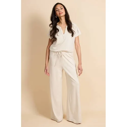 De G-maxx Romyne broek in crème is een ontspannen basisstuk voor dagen waarop je comfort en stijl wilt combineren. De lange wide leg pijpen vallen soepel langs het been en geven elke outfit een moderne, vrouwelijke uitstraling. Dankzij de regular waist met elastische tailleband en koord sluit de broek prettig aan rond je middel, zonder te knellen.Comfortabele pasvorm met rustige look Lange wide leg pijpen voor een luchtige en moderne pasvorm Elastische tailleband met tunnelkoord voor een verstelbare en comfortabele taille Zijzakken voor praktische opbergruimte van kleine essentials Effen crème kleur die makkelijk te combineren is met diverse tops Gemaakt van een soepele stof met modal, die zacht aanvoelt op de huid Casual damesbroek die past binnen een vrouwelijke, alledaagse stijlCasual broek voor dagelijkse outfitsDeze Romyne pants is ideaal voor een relaxte dag op kantoor, een lunchafspraak of een weekendje weg. Combineer met een basic T-shirt en sneakers voor een sportieve look, of kies een fijne blouse en sandalen voor een wat gekledere combinatie. De neutrale crème tint maakt het eenvoudig om te variëren met kleuren en prints in de rest van je outfit.G-maxx: eigentijdse stijl voor elke dagG-maxx richt zich op modieuze vrouwen die graag kleding dragen die meegaat in hun actieve leven. De collecties hebben een vrouwelijke, moderne uitstraling en zijn ontworpen met oog voor draaggemak. Met deze broek van G-maxx haal je een betrouwbaar kledingstuk in huis waar je het hele seizoen plezier van hebt.Een soepele, wide leg broek waarmee je zonder moeite een rustige en stijlvolle look creëert.