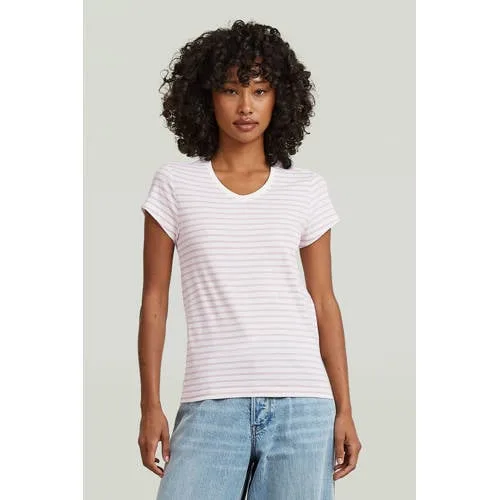 Dit G-STAR Eyben dames T-shirt is een aansluitend model met korte kapmouwen en een moderne streepprint. De V-hals zorgt voor een open halslijn die prettig draagt op warme dagen of onder een vest. Het T-shirt is gemaakt van katoen en voelt soepel aan op de huid. De gestreepte print geeft een rustige, tijdloze uitstraling die makkelijk combineert met jeans, rok of short.Comfortabele pasvorm met moderne details Aansluitende fit die het lichaam volgt zonder te strak te zitten Korte kapmouwen voor een vrouwelijke schouderlijn V-hals die ruimte biedt rond de hals en prettig valt Gemaakt van zacht katoen voor dagelijks draagcomfort Streepprint die zorgt voor een frisse, eigentijdse look Zonder borstzakken voor een rustig en clean voorpandVeelzijdig in elke dagMet dit T-shirt kies je voor een basis die zowel thuis als onderweg goed tot zijn recht komt. Het combineert eenvoudig met laagjes, van een open blouse tot een blazer, en past daardoor bij uiteenlopende momenten op de dag.G-STAR als stijlvaste keuzeG-STAR staat bekend om moderne casual kleding met aandacht voor vorm en afwerking. Het merk werkt met doordachte pasvormen en eigentijdse details die aansluiten bij een actieve levensstijl. Zo biedt G-STAR kleding die er verzorgd uitziet en prettig draagt, seizoen na seizoen.Een gestreept T-shirt dat je garderobe op een rustige en stijlvolle manier aanvult.