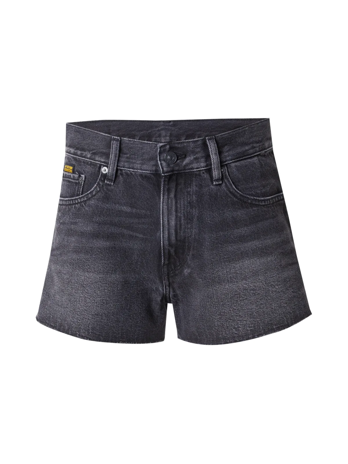 Design: Open randen, Ritssluiting, 5-pocket-style, Knop sluiting; Type sluiting: Ritssluiting; Materiaal: Denim; Motief: Effen; Extra's: Studs, Label patch/label flag, Op staal naden, Gewassen effect, Vaste grip, Riemlussen; Wassing: Heavy washed; Lengte: Kort/mini; Pasvorm: Regular; Taillehoogte: Mid waist