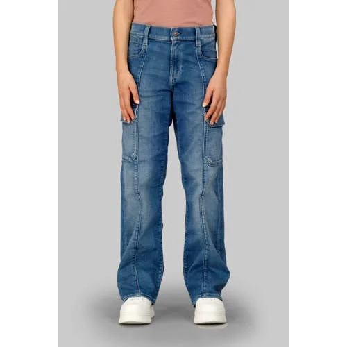 Deze G-STAR JUDEE jeans voor meisjes heeft een losse pasvorm. De jeans is gemaakt van 100% katoen en heeft een rits- en knoopsluiting. Voorzien van cargozakken, zakken voor en achter, perfect in medium blue denim.