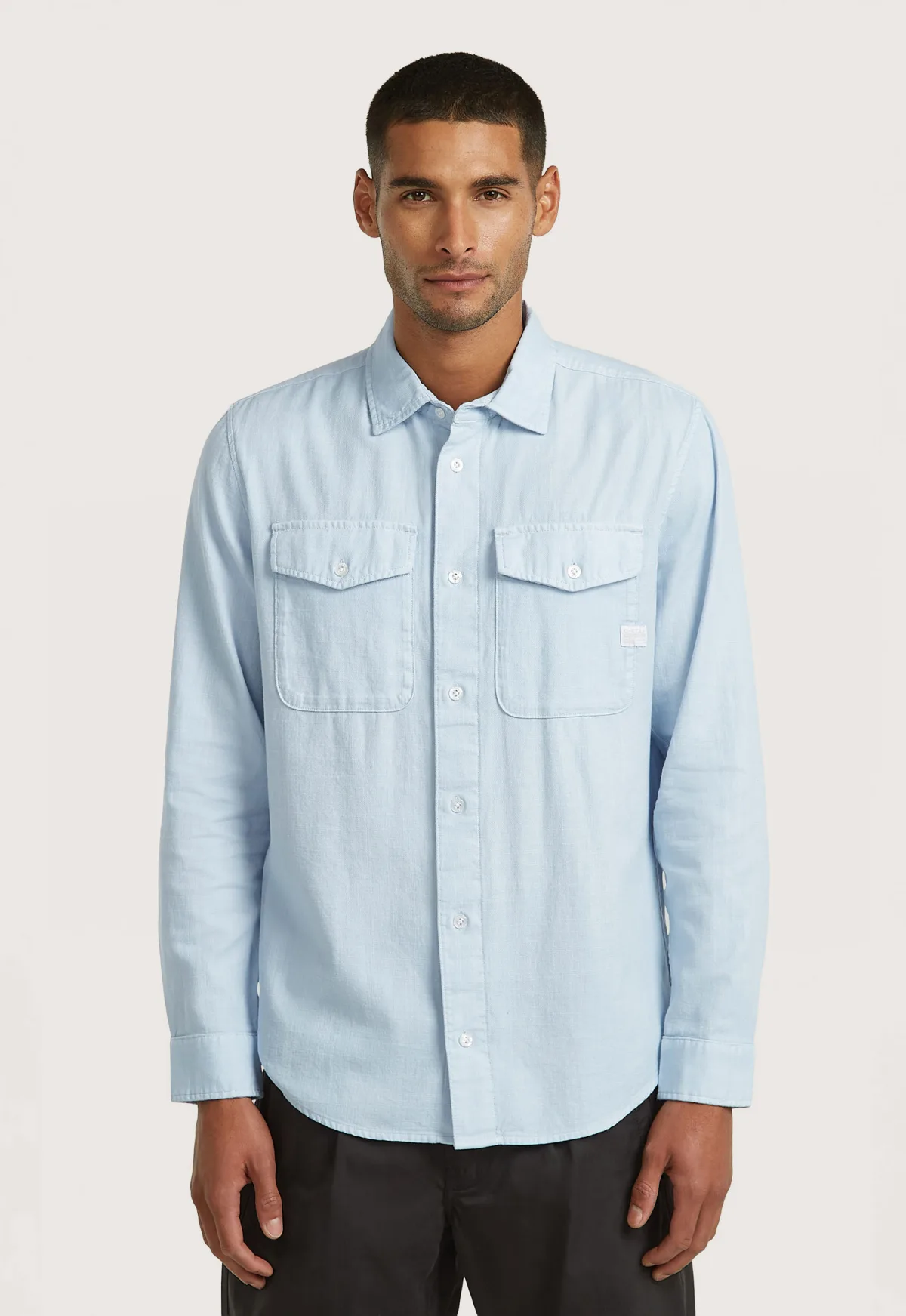 Dit is het D24963-D454 Marine Slim Overhemd van het merk G-Star. Dit overhemd is gemaakt van een combinatie van katoen en gerecycled katoen, wat zorgt voor een comfortabele en duurzame pasvorm. Het heeft een klassieke overhemdkraag en een knoopsluiting voor een elegante uitstraling. De borstzakken met klep voegen een functioneel detail toe aan het ontwerp. Lichtgewicht en ideaal voor casual gelegenheden.