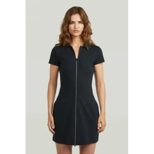 dames mini-jurk van G-Star Raw;viscosemix met stretch;nauwsluitend model;platte kraag;Doorlopende ritssluiting;ruglengte bij maat S: 86 cm;borstwijdte bij maat s: 44 cm;Mouwlengte bij maat S: 14 cm
