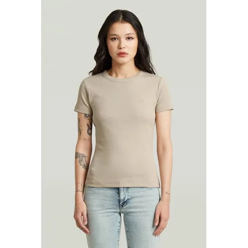 T-shirt van G-Star Raw voor dames;Elastische katoenmix;Slim fit;Gestikt logo;Riblook;Ronde hals;Ruglengte bij maat S: 56 cm