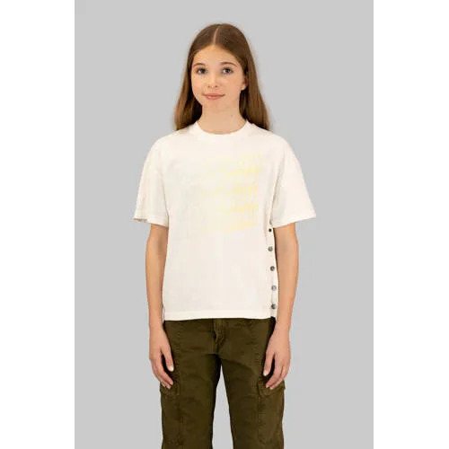 dit T-shirt voor meisjes van G-STAR is gemaakt van katoen. Het heeft een ronde hals en korte mouwen. De stijlnaam 'side button relaxed' benadrukt de sierknopen aan de zijkant. De kleur is ecru.