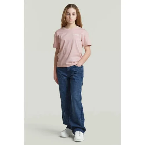 Dit roze meisjes T-shirt van katoen van G-STAR is een fijne basic voor elke dag. Die effen kleur maakt het makkelijk te combineren, terwijl de ronde hals en korte mouwen zorgen voor een ontspannen uitstraling. Dankzij het materiaal van 100% katoen voelt het T-shirt zacht aan en is het geschikt voor schooldagen, vrije tijd en alles daartussenin.Kenmerken van het T-shirt Gemaakt van 100% katoen voor een zachte touch op de huid Effen roze kleur, eenvoudig te combineren met jeans, shorts of rok Korte, rechte mouwen voor een comfortabele pasvorm Ronde hals die mooi aansluit zonder te strak te zitten Geschikt voor schoolkind en tiener, ideaal voor alledaags gebruik Wordt geleverd als 1 T-shirt, handig om gericht een favoriete kleur te kiezenElke dag makkelijk combinerenDit G-STAR T-shirt is een praktische keuze voor de kledingkast van je dochter. Draag het met een jeans en sneakers voor een casual look of met een rokje voor een iets gekledere outfit. De effen kleur maakt het T-shirt geschikt voor elk seizoen, met een vest of hoodie eroverheen op koudere dagen.G-STAR als vertrouwd merkG-STAR staat bekend om moderne kleding met een stoere, eigentijdse stijl. De collectie voor kinderen sluit aan bij de volwassen lijn, met aandacht voor vorm, pasvorm en materialen. Zo kies je voor kinderkleding die bij het dagelijks leven past en er tegelijkertijd verzorgd uitziet.Een fijne basic die snel een favoriet wordt in de kast.