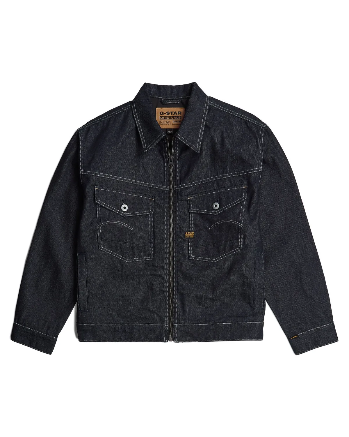 Design: Turn-down kraag; Type sluiting: Ritssluiting; Voering: Niet gevoerd; Materiaal: Denim; Motief: Effen; Extra's: Label patch/label flag; Pasvorm: Normale pasvorm