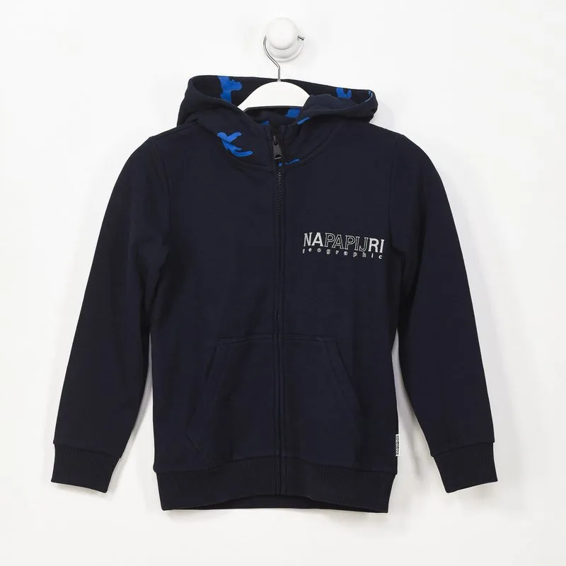 Napapijri hoodie. Navy kleur Hoodie. Ritssluiting. Lange mouwen met geribde boorden. Merknaam gedrukt op de voorkant. Naden in toon zichtbaar. Samenstelling: 100% polyester Maximaal wassen op 30ºC. - Niet strijken. - Kan in de droger. - Geen bleekmiddel gebruiken. - Kan niet chemisch gereinigd worden. Samenstelling: 100% polyester Onderhoud: Maximaal wassen op 30ºC. - Niet strijken. - Kan in de droger. - Geen bleekmiddel gebruiken. - Kan niet chemisch gereinigd worden.