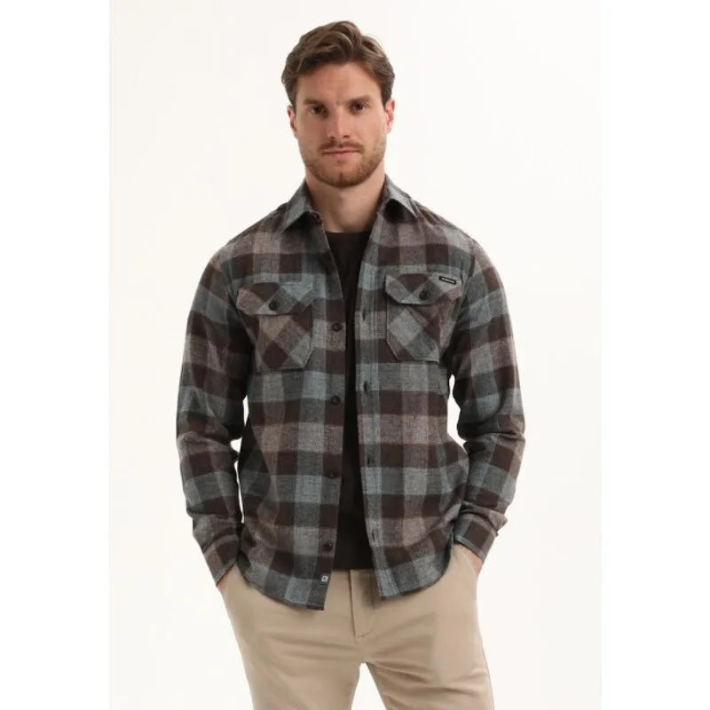 Gabbiano Overhemd Moderne Flannel Overhemd 335749 Oak Brown Mannen Maat...