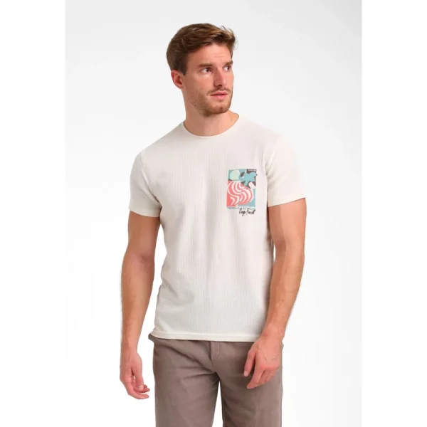 Dit eigentijdse jacquard T-shirt combineert comfort met een opvallende borstprint. Dankzij de fijne pasvorm en zachte stof draag je het moeiteloos de hele dag. Perfect te combineren met jeans en sneakers voor een relaxte look, of onder een gebreide trui voor een sportieve, stijlvolle twist. Een veelzijdige must-have voor elke moderne man.
