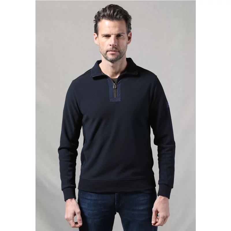 Deze stijlvolle halfzip sweater is uitgevoerd in een stevige Ottoman kwaliteit van comfortabele katoenmix.