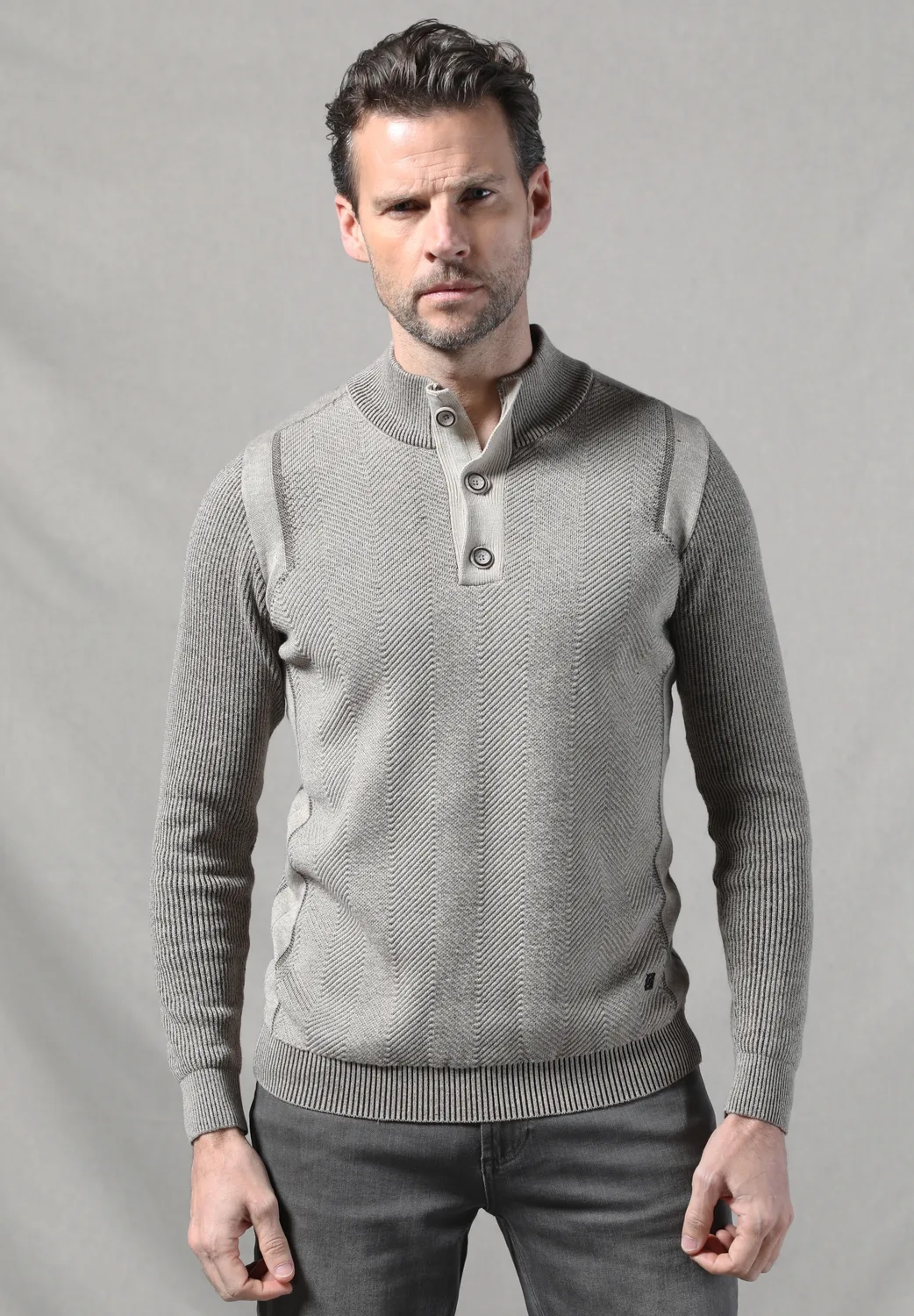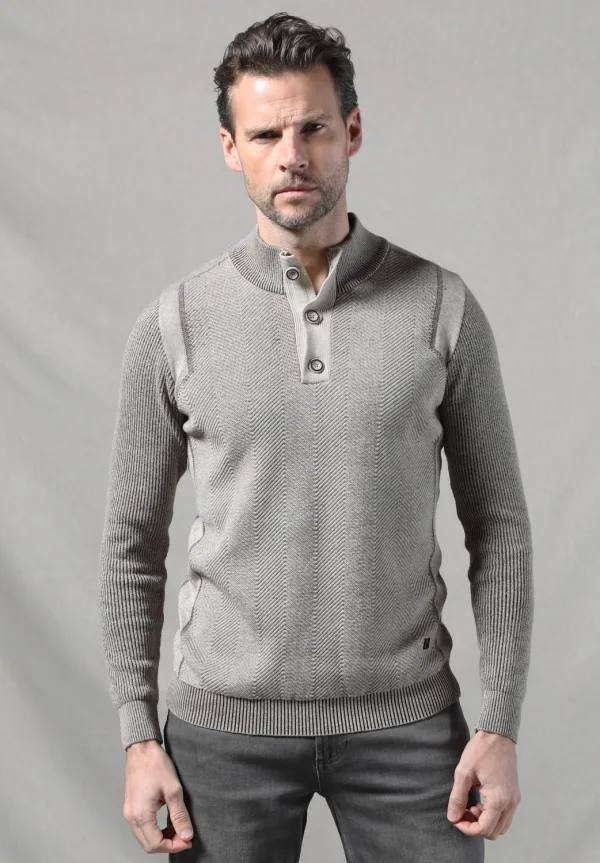 Gabbiano Trui Stoere Knoopsluiting Trui 615770 5558 Taupe Mannen Maat...
