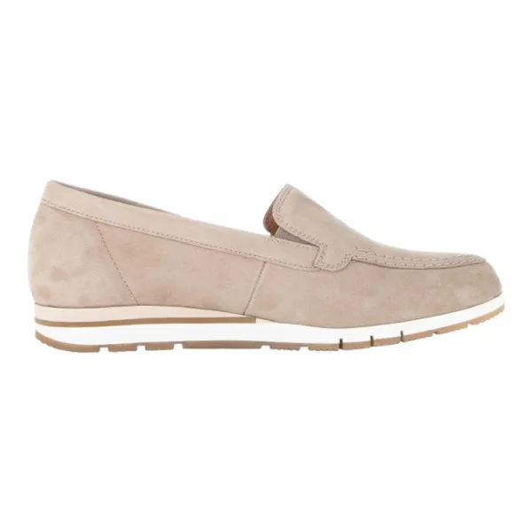 Ontdek ultiem comfort en tijdloze stijl met de Gabor Comfort loafers, model 42.414, uitgevoerd in een prachtige beige kleur . Deze loafers zijn ontworpen om jouw dagelijkse stappen te verlichten, zonder concessies te doen aan elegantie en klasse.Het buitenmateriaal van hoogwaardig nubuck leer, straalt luxe uit en geeft de schoen een unieke uitstraling. De combinatie van leer aan de binnenkant zorgt voor een zacht en comfortabel gevoel bij elke stap. Met de rubberen zool geniet je van optimale grip en flexibiliteit, perfect voor verschillende ondergronden.Het uitneembare voetbed, uitgerust met OPTIFIT-technologie, biedt ultiem comfort en de mogelijkheid om de inlegzool aan te passen aan jouw individuele behoeften. Met een hakhoogte van 1-2 cm (plat) bieden deze loafers precies de juiste hoeveelheid hoogte voor comfortabel dagelijks gebruik. De normale wijdte (Best Fitting) zorgt voor een perfecte pasvorm voor de meeste voettypes.Of je nu boodschappen doet, naar je werk gaat of een dagje uit bent, met de Gabor Comfort loafers model 42.414.30 silk stap je met gemak en stijl de wereld in. Bestel ze vandaag nog en ervaar het ultieme comfort waar je de hele dag op kunt vertrouwen.