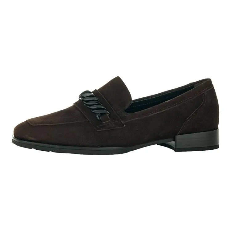 Dit model is specifiek ontworpen voor dames en heeft een comfortabele pasvorm. De buitenkant is gemaakt van suede, terwijl de binnenkant een combinatie van leer en andere materialen bevat. De zool is gemaakt van rubber en biedt goede grip. Het voetbed van deze instappers is niet uitneembaar. De hakhoogte is laag, ongeveer 3-4 cm, en de wijdte is normaal (G) met extra comfortopties. De sluiting is elastiek, wat zorgt voor gemak bij het aan- en uittrekken van de schoenen.