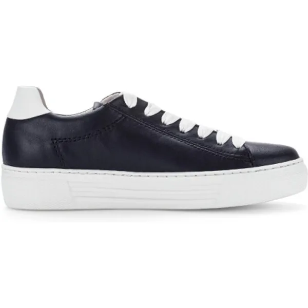 Gabor 66.460.66 in blauw leer combi is een comfortabele sneaker met versieringen en metalen oppervlakken op de achterkant. De buitenzool is slipvast en de binnenzool is uitneembaar. G-fit blauwe zomersneaker voor dames.