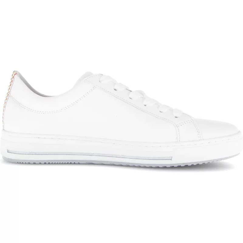 Gabor 66.518.50 in wit leer combi is een comfortabele sneaker met versieringen en metalen oppervlakken op de achterkant. De buitenzool is slipvast en de binnenzool is uitneembaar. G-fit witte zomersneaker voor dames.