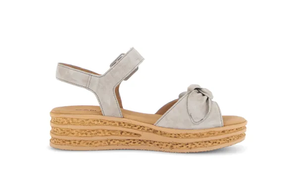 Voor deze elegante Gabor sandaal (artikel 84.553.11) hebben we een omschrijving gemaakt die de focus legt op de verfijnde grijstint en het modieuze plateau-ontwerp.Gabor 84.553.11 - Plateau Sandaal met Strikdetail in LichtgrijsMet deze lichtgrijze sandaal van Gabor combineert u moeiteloos een vrouwelijke stijl met een eigentijds randje. Het zachte suède in een subtiele grijstint geeft de schoen een rustige, luxe uitstraling, terwijl het opvallende strikelement op de voorvoet voor een speels en charmant accent zorgt. De gelaagde plateauzool met kurkdetails maakt deze sandaal tot een echte zomerse must-have.De highlights van dit model:Materiaal: Vervaardigd uit hoogwaardig, fluweelzacht suède.Stijlvol Accent: De voorste band is voorzien van een elegant strikdetail voor een verfijnde look.Comfortabele Hoogte: De modieuze plateauzool biedt extra lengte en een trendy silhouet zonder de voet te vermoeien.Optimale Sluiting: Voorzien van een verstelbare enkelband met een robuuste gesp in dezelfde kleur als het bovenwerk voor een harmonieus geheel.Zacht Voetbed: Uitgerust met een gevoerd voetbed dat bij elke stap een aangename demping biedt. Fris en VeelzijdigDe lichtgrijze kleur van deze Gabor sandaal is de perfecte neutrale basis voor uw zomerse outfits. Het model staat prachtig onder een witte linnen broek voor een cleane look, maar geeft ook een zacht contrast aan kleurrijke zomerjurken.Tip van onze specialist: Gabor sandalen staan bekend om hun uitstekende loopcomfort. Dankzij de plateaudikte ervaart u minder druk op de bal van de voet, wat ideaal is voor een dagje uit of een feestelijke gelegenheid.