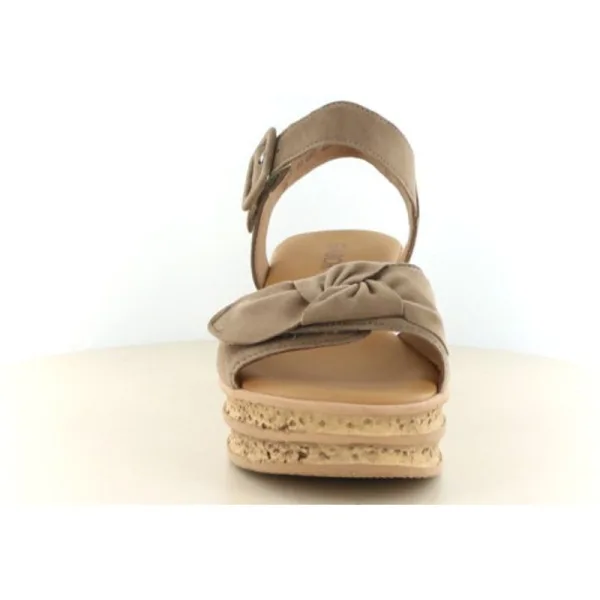 De 84.653 sandaal met sleehak in kleur 18 Peanut is een perfecte combinatie van comfort en zomerse elegantie. Deze warme taupe/bruintint geeft de sandaal een natuurlijke en veelzijdige uitstraling, waardoor hij moeiteloos te combineren is met zowel lichte als donkere zomertinten.Het bovenwerk is vervaardigd van hoogwaardig leer dat zich soepel naar de voet vormt. De brede voorband is afgewerkt met een subtiele sierknoop, wat zorgt voor een vrouwelijke en verfijnde look. Dankzij de verstelbare klittenbandsluiting rondom de enkel trekt u de sandaal eenvoudig aan en creëert u een optimale pasvorm. De wijdtemaat F½ maakt dit model geschikt voor de normale voet.De comfortabele sleehak met plateauzool geeft u extra lengte en een elegante houding, terwijl de brede basis zorgt voor stabiliteit tijdens het lopen. De zool met kurklook detail versterkt het zomerse karakter en is licht van gewicht. Het zachte voetbed biedt aangename demping, waardoor u deze sandaal moeiteloos de hele dag kunt dragen – ideaal voor een dagje uit, een zomers diner of een feestelijke gelegenheid.Bent u op zoek naar een leren dames sandaal met sleehak in een neutrale kleur die comfort en stijl combineert? Dan is dit model een veelzijdige keuze voor uw zomergarderobe.