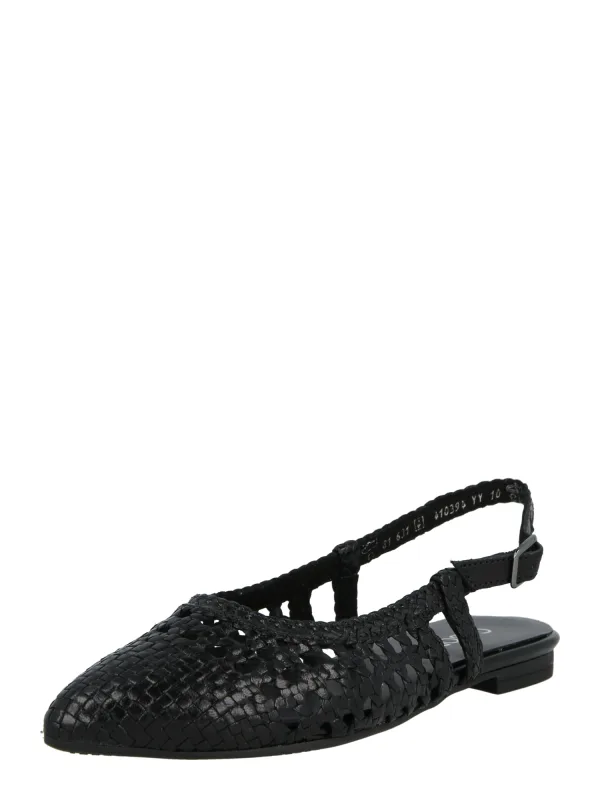 Design: Gevoerd, Verstelbare riemen; Type sluiting: Riemsluiting; Materiaal: Leer; Motief: Effen; Materiaal: Glad leer; Schoenneus: Spitse neus; Extra’s: Gevlochten structuur, Flexibele zool; Hakhoogte: Platte hak (0-3 cm)