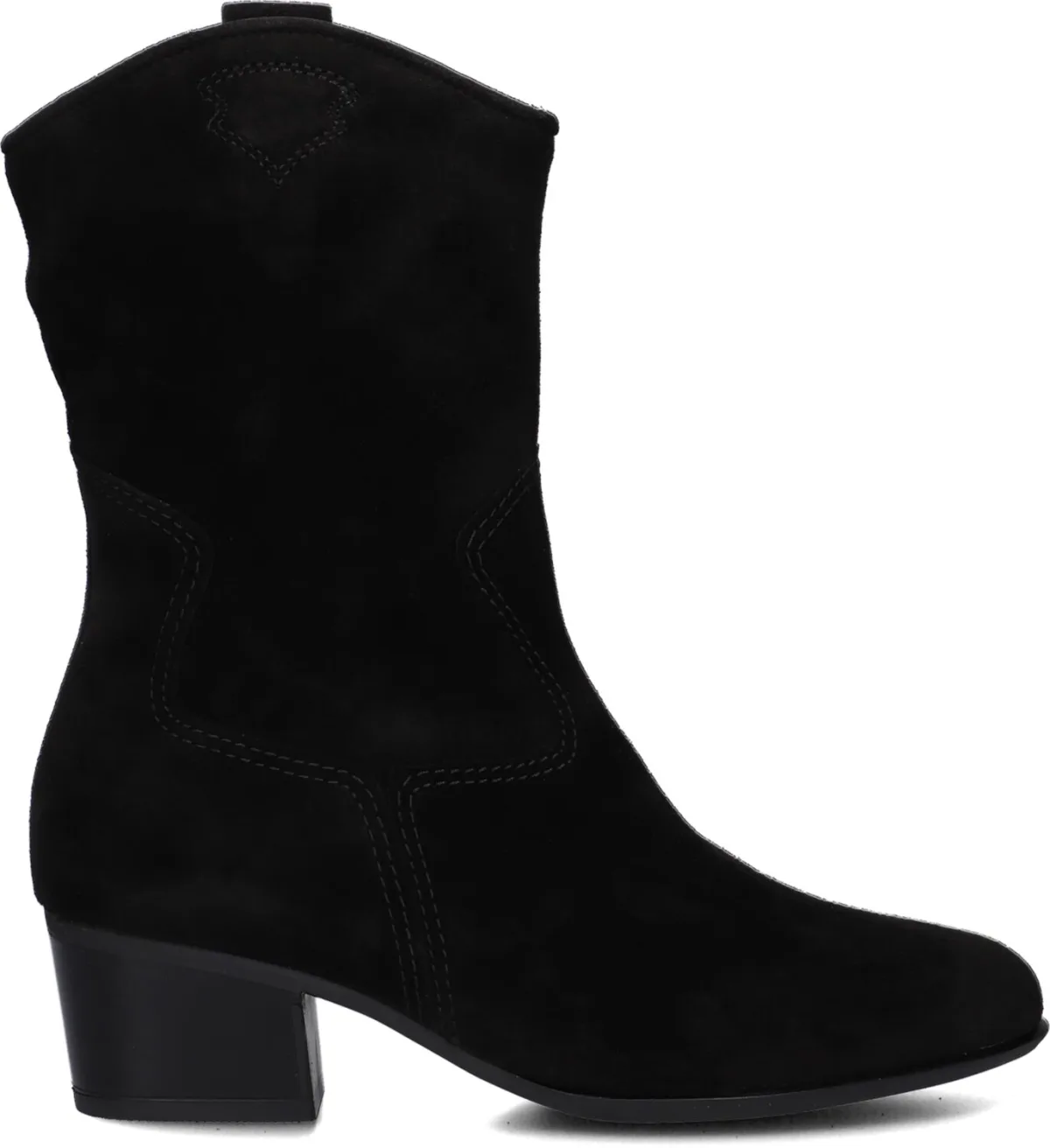 Met deze zwarte enkellaarzen 681.2 van GABOR ben jij helemaal on-trend! De lichtpuntige neus, de houtlook blokhak, de stiksels op de schacht en de afgeronde schacht met aantreklus geven de laarzen een cowboy look. Gemaakt van hoogwaardig suède aan de buitenkant en binnenkant, bieden deze laarzen niet alleen comfort, maar zijn ze ook heerlijk soepel. De rits zorgt voor een gemakkelijke sluiting. Met een hakhoogte van 5 centimeter en een schachthoogte van 22 centimeter zijn deze laarzen perfect voor elke gelegenheid. Combineer ze met een zwarte skinny jeans en een oversized trui voor een trendy look. Of draag ze onder een jurk voor een elegante touch. Met deze laarzen ben jij klaar om te stralen!