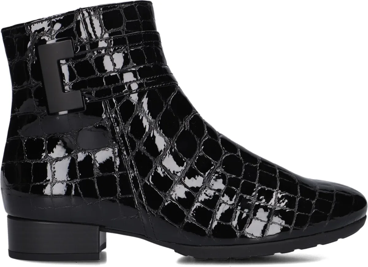 Stap stijlvol de herfst en winter in met de GABOR 712 enkellaarsjes. Deze zwarte beauties met krokodillenprint en lakleren buitenkant geven elke outfit een trendy touch. De leren binnenkant zorgt voor comfort, terwijl de rubberen zool grip biedt tijdens een wandeling door het park of een middagje shoppen. De blokhak van 3 cm en de ronde neus maken ze perfect voor dagelijks gebruik. Combineer ze met een warme wollen jurk of een stoere skinny jeans voor een complete look. De rits aan de zijkant maakt aan- en uittrekken een fluitje van een cent. Een must-have voor elke dame!