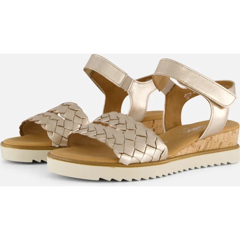 Deze Gabor sandalen met metallic look hebben een synthetisch bovenwerk. De voering is gemaakt van leer en de comfortabele binnenzool is synthetisch. De sandalen hebben een breder oppervlak rond de wreef en een klittenbandsluiting. De zool is gemaakt van rubber en duurzaam kurk en heeft een hakhoogte van 4,5 centimeter.