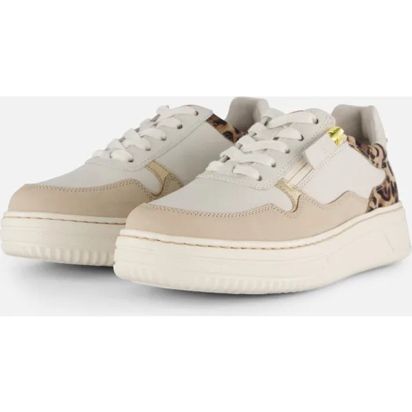 Deze Gabor sneakers voor dames hebben een frisse witte basis met beige accenten en trendy panterprint details. De combinatie van veters en een rits zorgt voor een praktische en goede pasvorm. Het synthetische bovenwerk en de textiele binnenkant bieden prettig comfort. De uitneembare leren binnenzool maakt de sneaker extra comfortabel en veelzijdig. Een modieuze Gabor sneaker voor dagelijks gebruik.