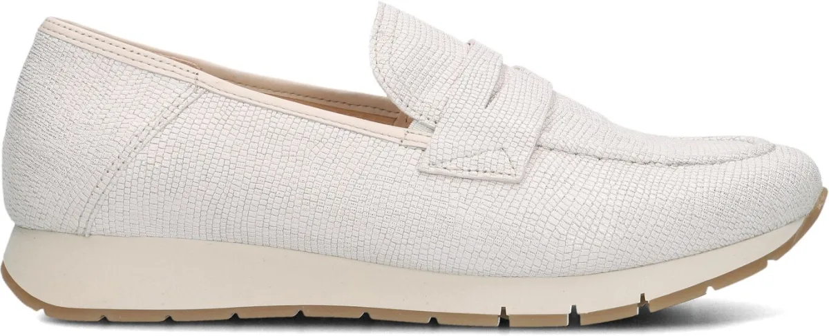 Stap in stijl met deze witte instappers van GABOR. Het bovenwerk bestaat uit wit leer met een mooie structuur en een subtiele glitter. De leren binnenkant zorgt voor een luxe gevoel en maakt ze ideaal om te combineren met een zomerse jurk of een casual jeans. Met de 471.11 ben je altijd on-trend en klaar voor elke gelegenheid.