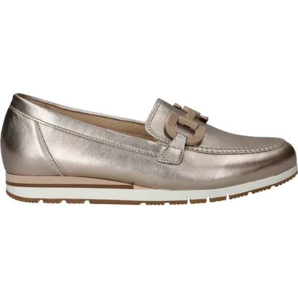 Deze Gabor Instappers zijn voor Dames in de kleur Goud. De schoenen zijn gemaakt van het materiaal Metallic en de voering is gemaakt van . De voetbreedte van de schoenen is G - normaal.