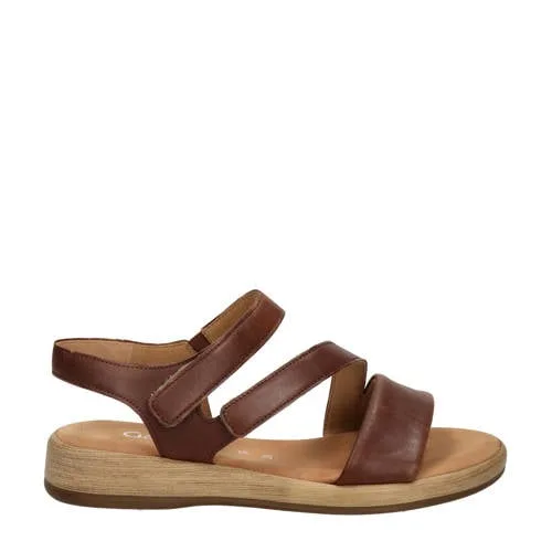 Deze sandaal voor dames van Gabor uit de Nelson-collectie heeft een bovenwerk van leer. Het model is voorzien van een klittenbandsluiting en een platte zool. De sandaal heeft een voering van textiel en een vast voetbed.