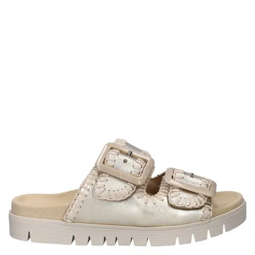 Stap relaxed de zomer in met deze goudkleurige Gabor Best Fitting dames slipper. De metallic glans geeft iedere outfit direct een moderne, boho geïnspireerde twist, terwijl de chunky plateauzool zorgt voor een eigentijdse look. Het bovenwerk is gemaakt van 100% leer en is afgewerkt met decoratieve stiksels langs de randen, wat zorgt voor een verzorgd en stijlvol geheel.Comfort en stijl in één slipper 'Best Fitting' technologie met verbreed voetbed bij de voorvoet voor extra bewegingsvrijheid Zacht voetbed dat zich naar de voet vormt voor langdurig loopcomfort Bovenwerk en voering van leer die soepel aanvoelen op de huid Lichtgewicht plateauzool met profiel voor goede grip op verschillende ondergronden Twee verstelbare gespen voor een pasvorm die je eenvoudig aan je voet aanpast Laag hakhoogtebereik van 0 tot 2,5 cm voor een stabiel gevoel tijdens het lopen Goudkleurig metallic leer dat mooi combineert met luchtige jurken, denim shorts en zomerse linnen broekenGouden slipper voor al je zomerdagenDeze slipper is ideaal voor dagelijks gebruik, van een middag in de stad tot een lange zomerse wandeling langs de boulevard. De combinatie van het verbreed voetbed en de profielzool ondersteunt bij iedere stap, terwijl de goudkleurige finish je outfit iets extra's geeft.Gabor met focus op pasvormGabor staat bekend om schoenen met een doordachte pasvorm en een prettig draaggevoel. De Best Fitting lijn speelt daar extra op in met meer ruimte waar je voet dat nodig heeft. Zo combineer je een moderne, modische slipper met het comfort dat je de hele dag door kunt dragen.Een stijlvolle keuze voor wie op zoek is naar comfort en een opvallende gouden touch in de zomergarderobe.