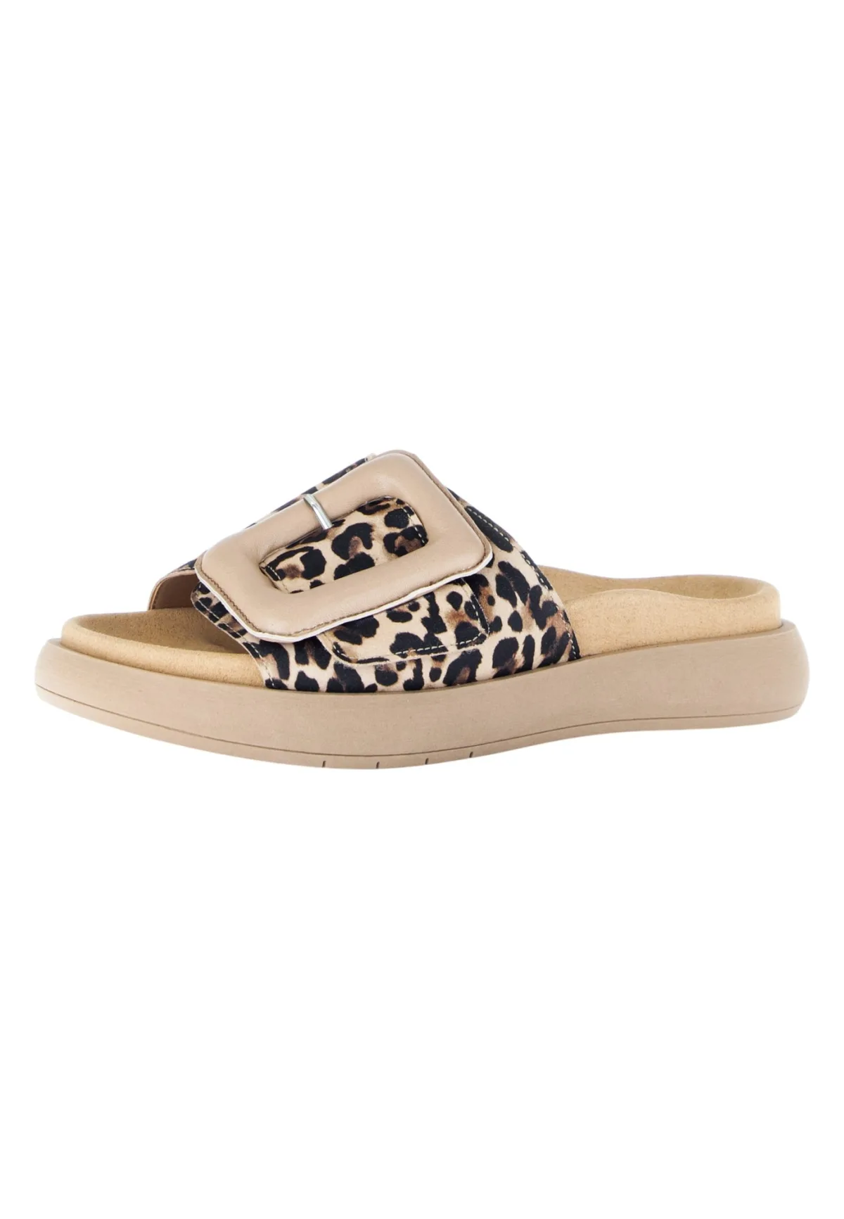Design: Anatomisch gevormd voetbed, Elastische inzetstukken; Type sluiting: Slip; Materiaal: Leer; Motief: Dierenprint; Plateau: Met plateau; Materiaal: Glad leer; Schoenneus: Open toe; Extra's: Flexibele zool, Antislip; Hakhoogte: Platte hak (0-3 cm)