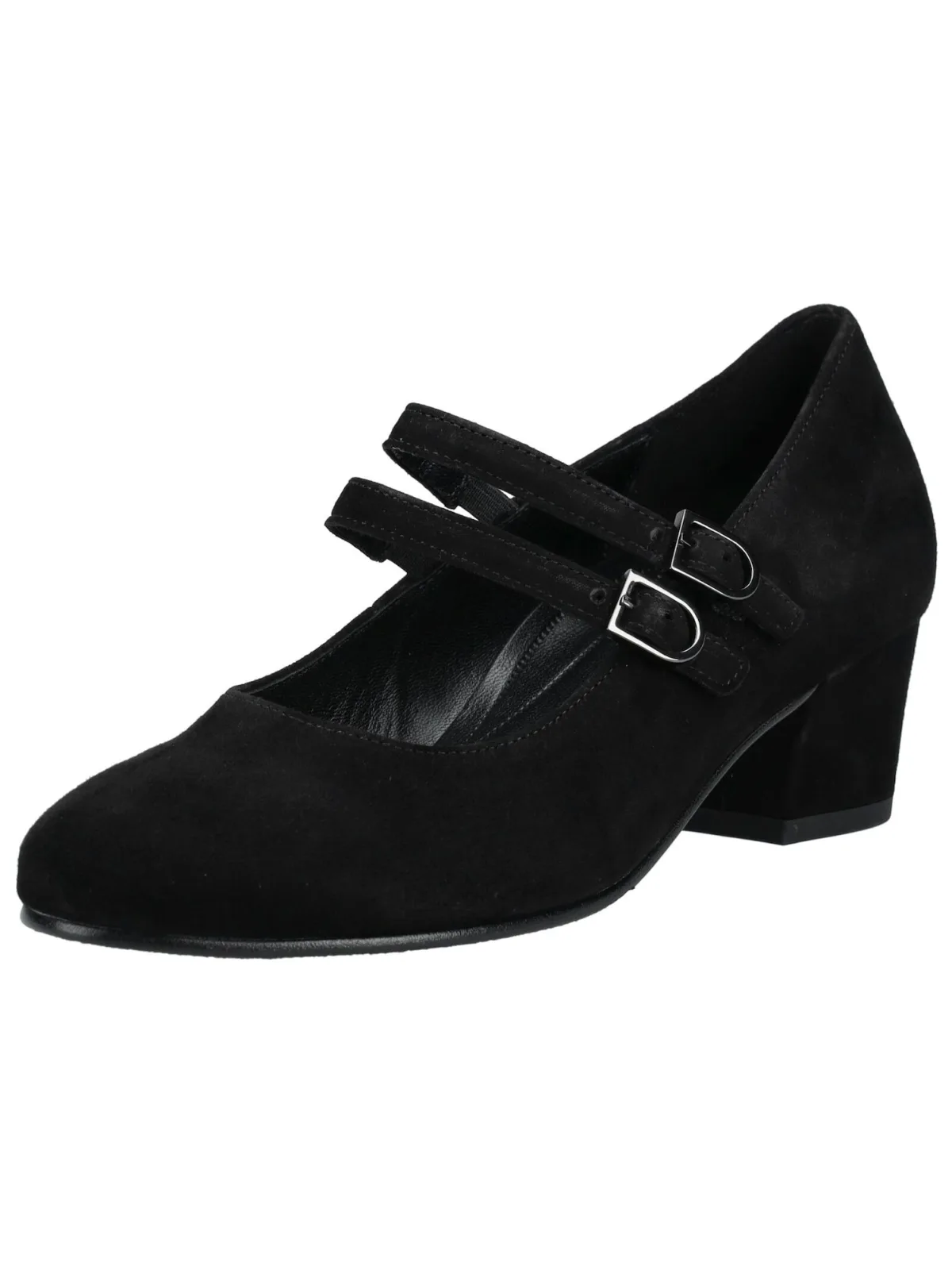Design: Pumps met enkelbandje, Siernaad; Type sluiting: Riemsluiting; Type hak: Blokhak; Materiaal: Leer; Motief: Effen; Materiaal: Suède; Schoenneus: Ronde neus; Extra's: Buigzame grip, Flexibele zool; Hakhoogte: Middelhoge hak (3-7 cm); Pasvorm van de schoenen: Breed