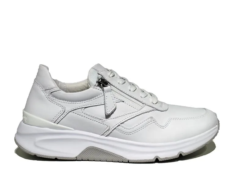 Stap in een wereld van ultiem comfort en eigentijdse stijl met de Rolling Soft by Gabor 46.896.51 Weiss dames sneakers. Deze sneakers zijn ontworpen om je dagelijkse avonturen te begeleiden met een perfecte combinatie van mode en functionaliteit.De verfijnde witte kleur van het leren bovenwerk geeft deze sneakers een moderne uitstraling die gemakkelijk te integreren is in elke outfit. Het gebruik van hoogwaardig leer en andere materialen resulteert in een duurzame constructie die tegen een stootje kan.De binnenvoering van leer biedt niet alleen een luxueus gevoel aan je voeten, maar zorgt ook voor ademend vermogen en comfort gedurende de hele dag. Het uitneembare voetbed is een praktische toevoeging, waardoor je je eigen inlegzolen kunt gebruiken voor een gepersonaliseerde pasvorm.Met een platte hakhoogte van 1-2 cm en een normale wijdte bieden deze sneakers een ideale balans tussen ondersteuning en bewegingsvrijheid. De rubberen zool dempt schokken en zorgt voor grip, waardoor je moeiteloos kunt bewegen.Deze sneakers zijn ontworpen voor gemak, met zowel een rits- als vetersluiting. Dit maakt het aantrekken en aanpassen van de schoenen een eenvoudige taak. Het unieke serienummer 46.896.51 is een symbool van de hoogwaardige kwaliteit van Rolling Soft by Gabor.De Rolling Soft by Gabor 46.896.51 Weiss dames sneaker