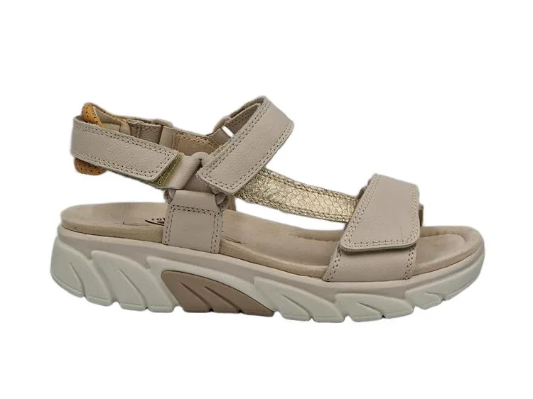 Deze beige Gabor Rollingsoft sandalen hebben een sportieve uitstraling en zijn ideaal voor elke dag. Het leren bovenwerk geeft de sandaal een verzorgde look, terwijl de klittenbandsluitingen zorgen voor een makkelijke instap en een verstelbare pasvorm. De stevige zool met dynamisch design maakt het geheel extra eigentijds en geeft de sandaal een actieve uitstraling. Uitgevoerd in een G-leest is deze sandaal geschikt voor de normale voet en perfect te combineren met een casual zomerse outfit.