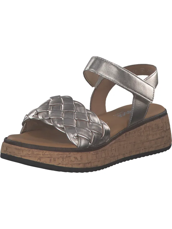 Design: Elastische inzetstukken, Profielzolen; Type sluiting: Velcro sluiting; Type hak: Sleehak; Materiaal: Leer; Motief: Effen; Plateau: Met plateau; Materiaal: Glad leer; Schoenneus: Open toe; Extra's: Flexibele zool, Metallic look; Hakhoogte: Middelhoge hak (3-7 cm)