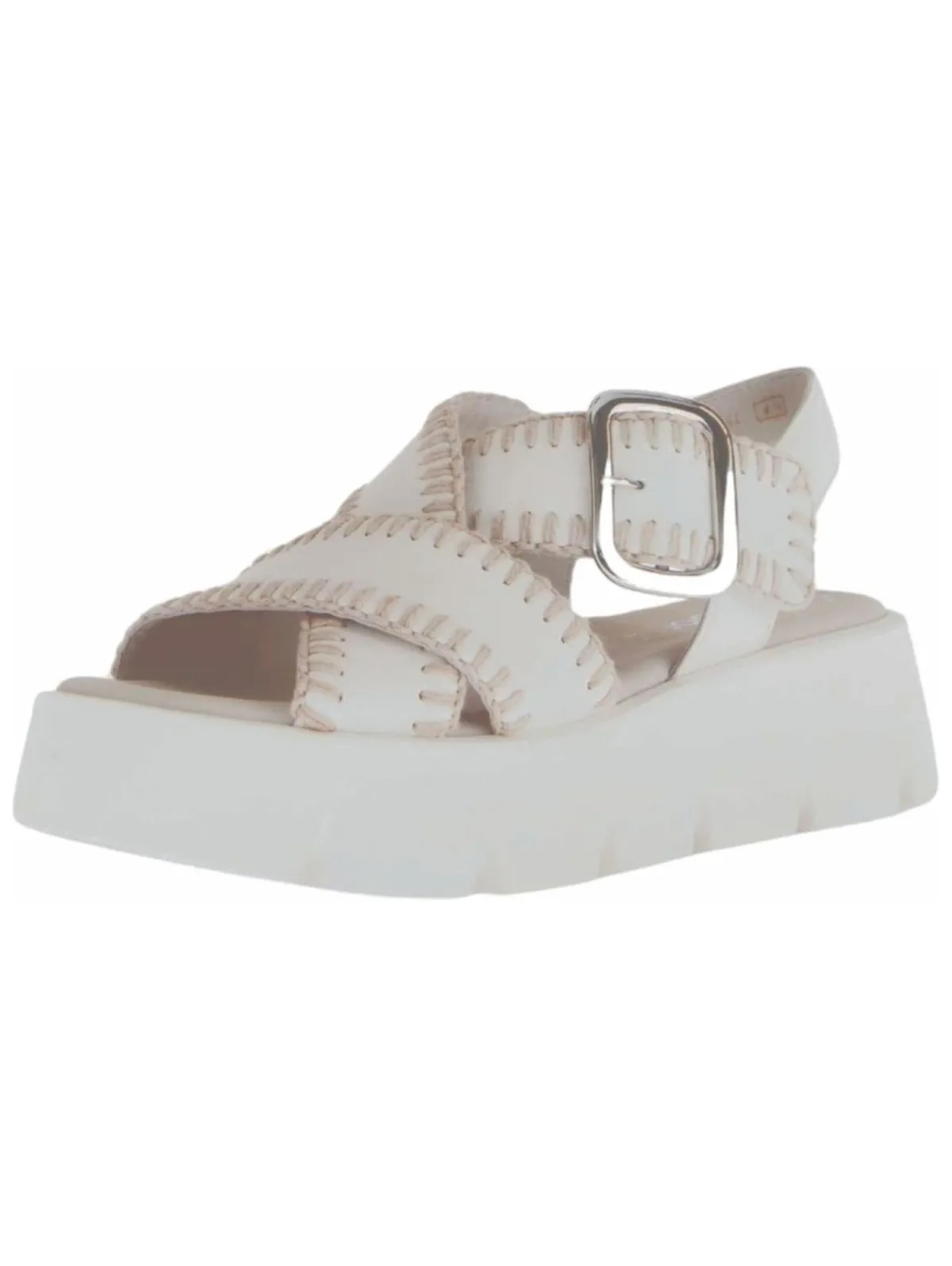 Design: Gevoerd, Verstelbare riemen; Type sluiting: Riemsluiting; Type hak: Sleehak; Materiaal: Leer; Motief: Effen; Plateau: Met plateau; Materiaal: Glad leer; Schoenneus: Open toe; Extra’s: Contrasterende naden, Flexibele zool; Hakhoogte: Middelhoge hak (3-7 cm)